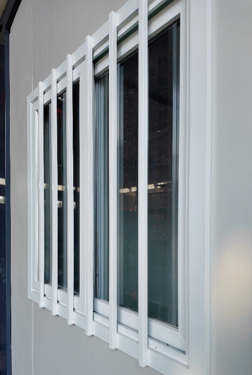 • Window: With vertical security bars, allowing light in while maintaining security.
